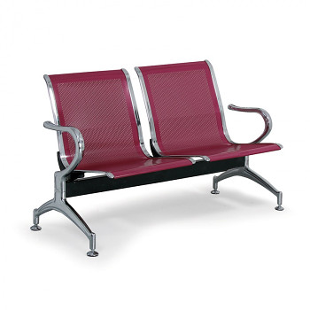 kovová lavice, 2-sedák, sedačka s opěrákem z jednoho kusu perforovaného plechu, barva červená, podnož chrom