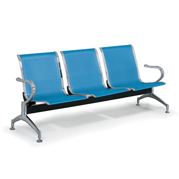 kovová lavice, 3-sedák, sedačka bez opěráku, perforovaný plech, barva modrá, podnož chrom