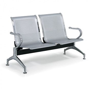 kovová lavice, 2-sedák, sedačka s opěrákem z jednoho kusu perforovaného plechu, barva stříbrná, podnož chrom