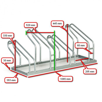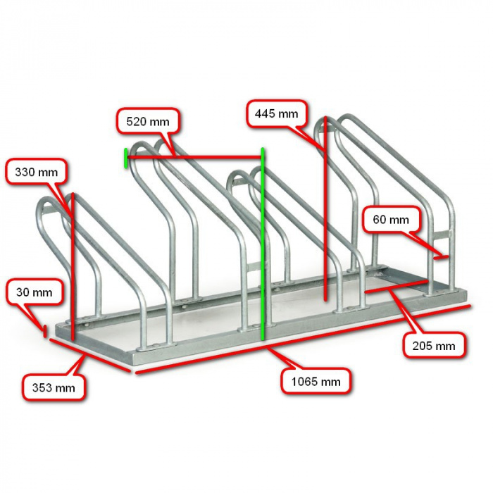 | Jednostranný stojan na kola | předchozí produkt | Stojan na jízdní kola, 4 stání | další produkt | Stojan na kola oboustranný, 5 stání |