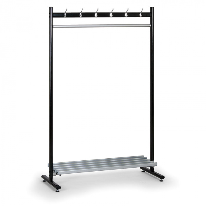 • variabilní věšák s mnoha možnostmi sestavení - tyč se 6ti háčky nebo oboustranná tyč s 12ti háčky na oděvy a kloubouky, tyč na ramínka či rošt na odložení tašek a bot, lze různě kombinovat