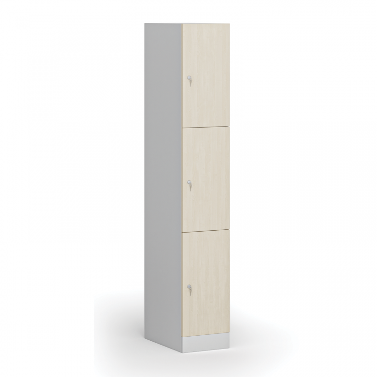 Šatní skříňka s úložnými boxy, 3 boxy, 1850 x 300 x 500 mm, cylindrický zámek, laminované dveře, bříza| Hmotnost (kg) | 26 |
