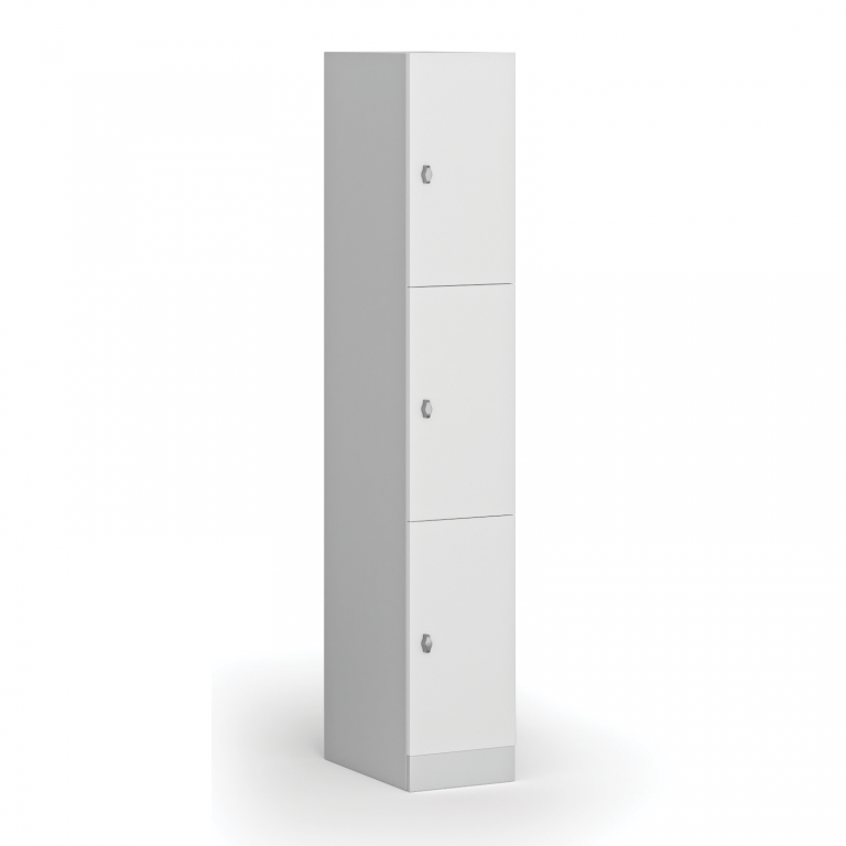 Šatní skříňka s úložnými boxy, 3 boxy, 1850 x 300 x 500 mm, otočný zámek, laminované dveře, bílá| Barva dveří | bílá |