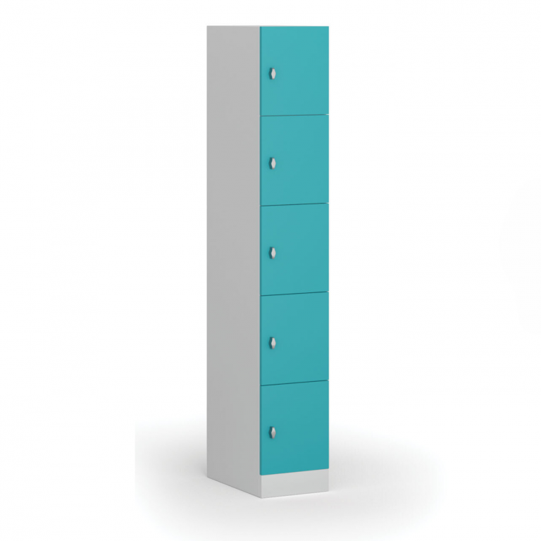 Šatní skříňka s úložnými boxy, 5 boxů, 1850 x 300 x 500 mm, otočný zámek, zelené dveře| Barva dveří | zelená |