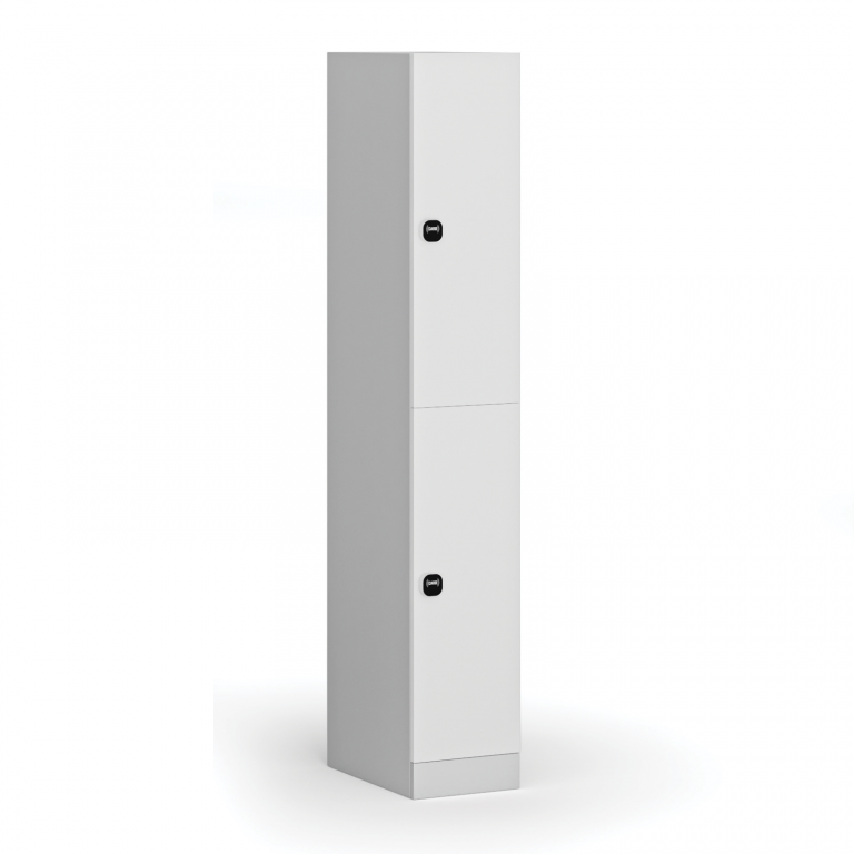 Šatní skříňka S1 s úložnými boxy, 2 boxy, 1850 x 300 x 500 mm, RFID zámek, laminované dveře, bílá| Hmotnost (kg) | 25 |