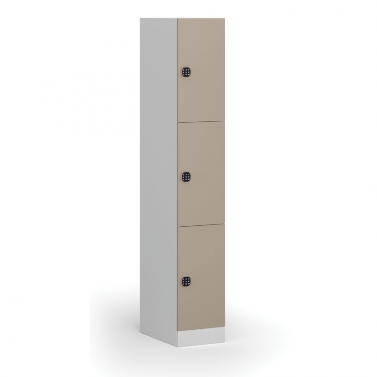 Šatní skříňka S1 s úložnými boxy, 3 boxy, 1850 x 300 x 500 mm, kódový zámek, béžové dveře| Hmotnost (kg) | 26 |