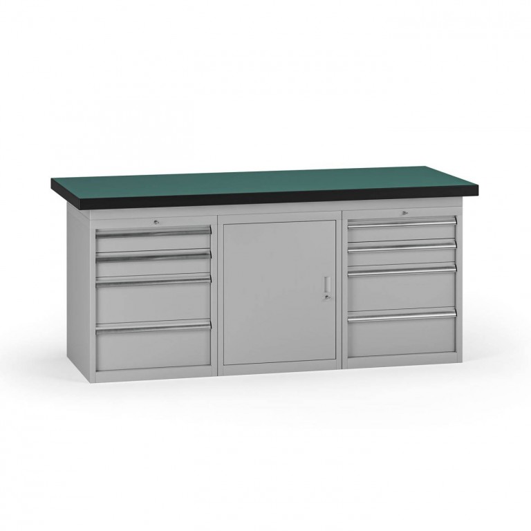 Pracovní stůl do dílny, 1800 x 750 x 800 mm, 1x skříňka, 2x kontejner, 8 zásuvek, šedá| Barva | šedá |