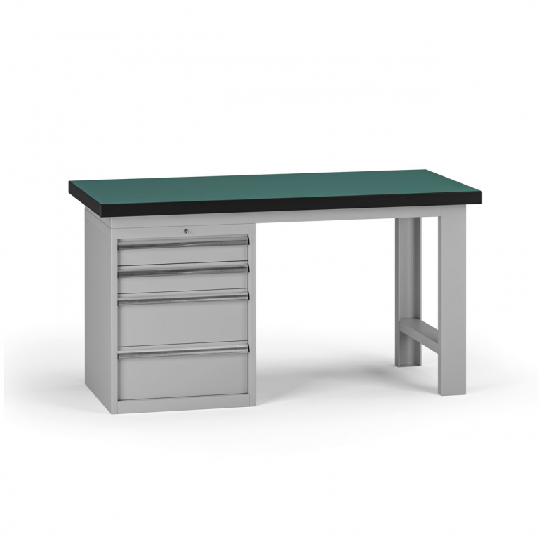 Pracovní stůl do dílny G8, 1500 x 750 x 800 mm, 1x kontejner, 4 zásuvky, šedá| Barva | šedá |