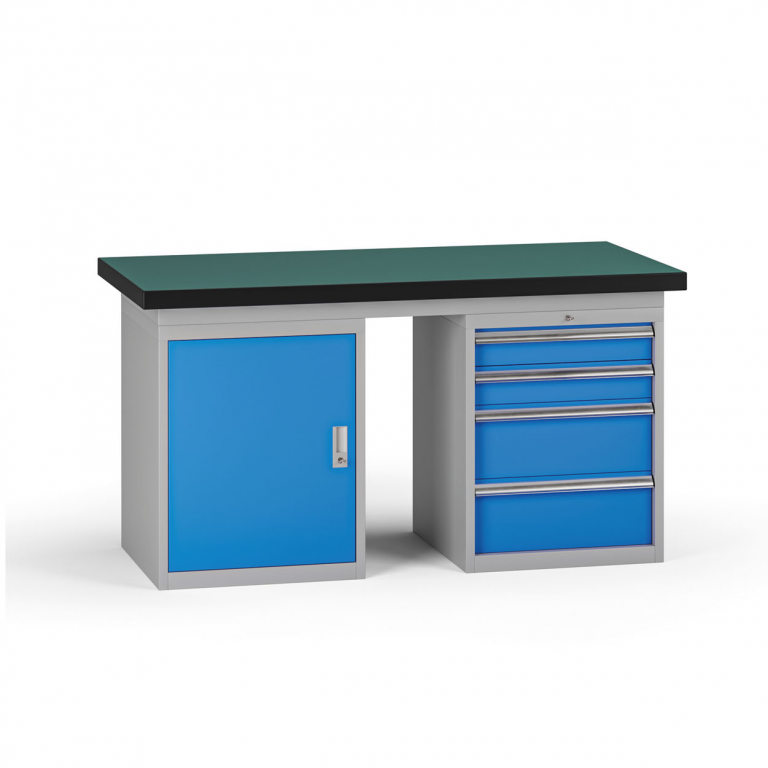 Pracovní stůl do dílny G8, 1500 x 750 x 800 mm, 1x skříňka, 1x kontejner, 4 zásuvky, modrá| Barva | modrá |