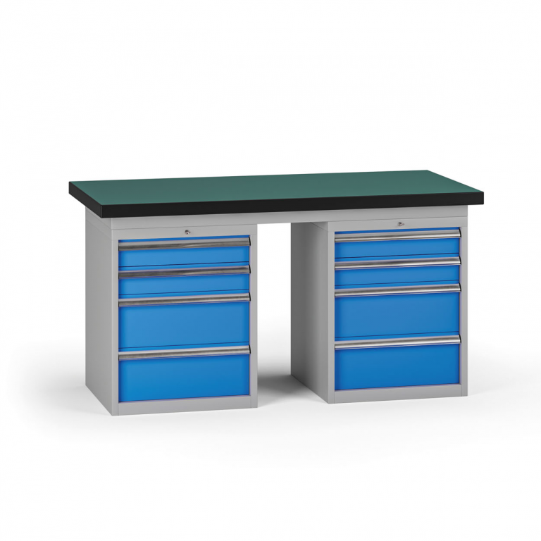 Pracovní stůl do dílny G8, 1500 x 750 x 800 mm, 2x kontejner, 8 zásuvek, modrá| Barva | modrá |