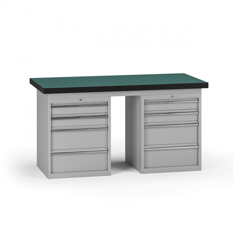 Pracovní stůl do dílny G8, 1500 x 750 x 800 mm, 2x kontejner, 8 zásuvek, šedá| Barva | šedá |