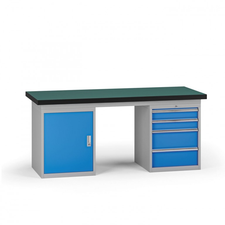 Pracovní stůl do dílny G8, 1800 x 750 x 800 mm, 1x skříňka, 1x kontejner, 4 zásuvky, modrá| Barva | modrá |