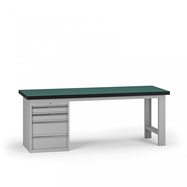 Pracovní stůl do dílny G8, 2100 x 750 x 800 mm, 1x kontejner, 4 zásuvky, šedá| Barva | šedá |