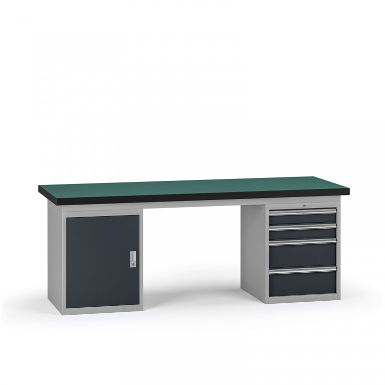 Pracovní stůl do dílny G8, 2100 x 750 x 800 mm, 1x skříňka, 1x kontejner, 4 zásuvky, grafit| Barva | grafit |