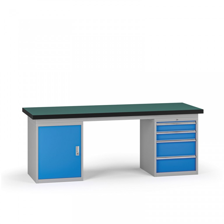 Pracovní stůl do dílny G8, 2100 x 750 x 800 mm, 1x skříňka, 1x kontejner, 4 zásuvky, modrá| Barva | modrá |