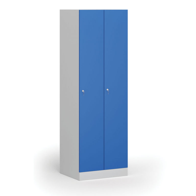 Kovová šatní skříňka, 2 oddíly, 1850 x 600 x 500 mm, cylindrický zámek, modré dveře| Barva dveří | modrá |