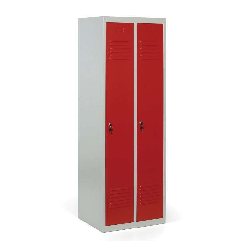 Kovová šatní skříňka ECONOMIC, 2 oddíly, 1800 x 600 x 500 mm, cylindrický zámek, červené dveře| Barva dveří | červená |