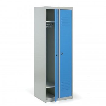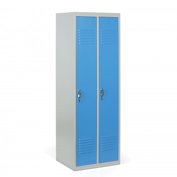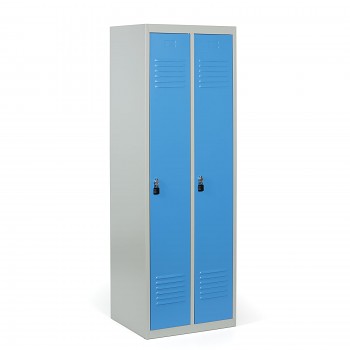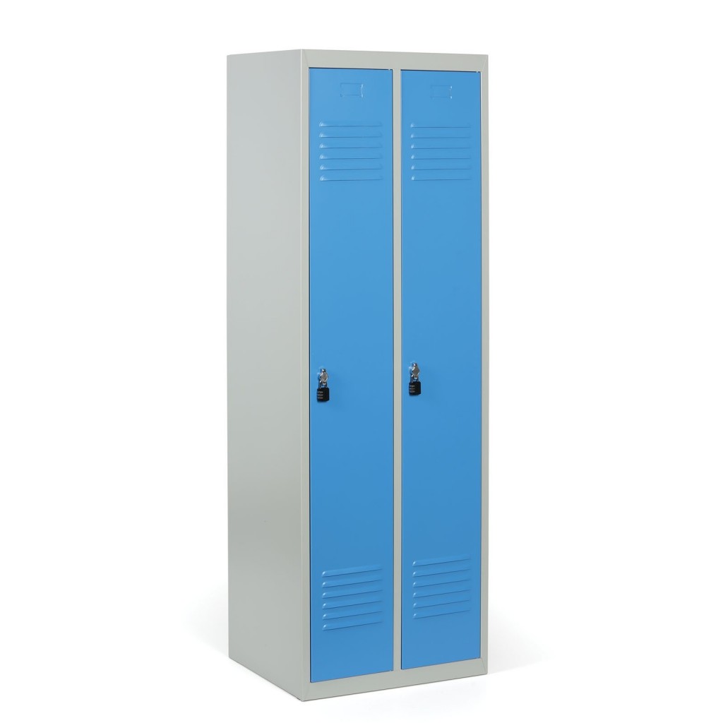 Kovová šatní skříňka ECONOMIC, 2 oddíly, 1800 x 600 x 500 mm, otočný zámek, modré dveře| Barva dveří | modrá |