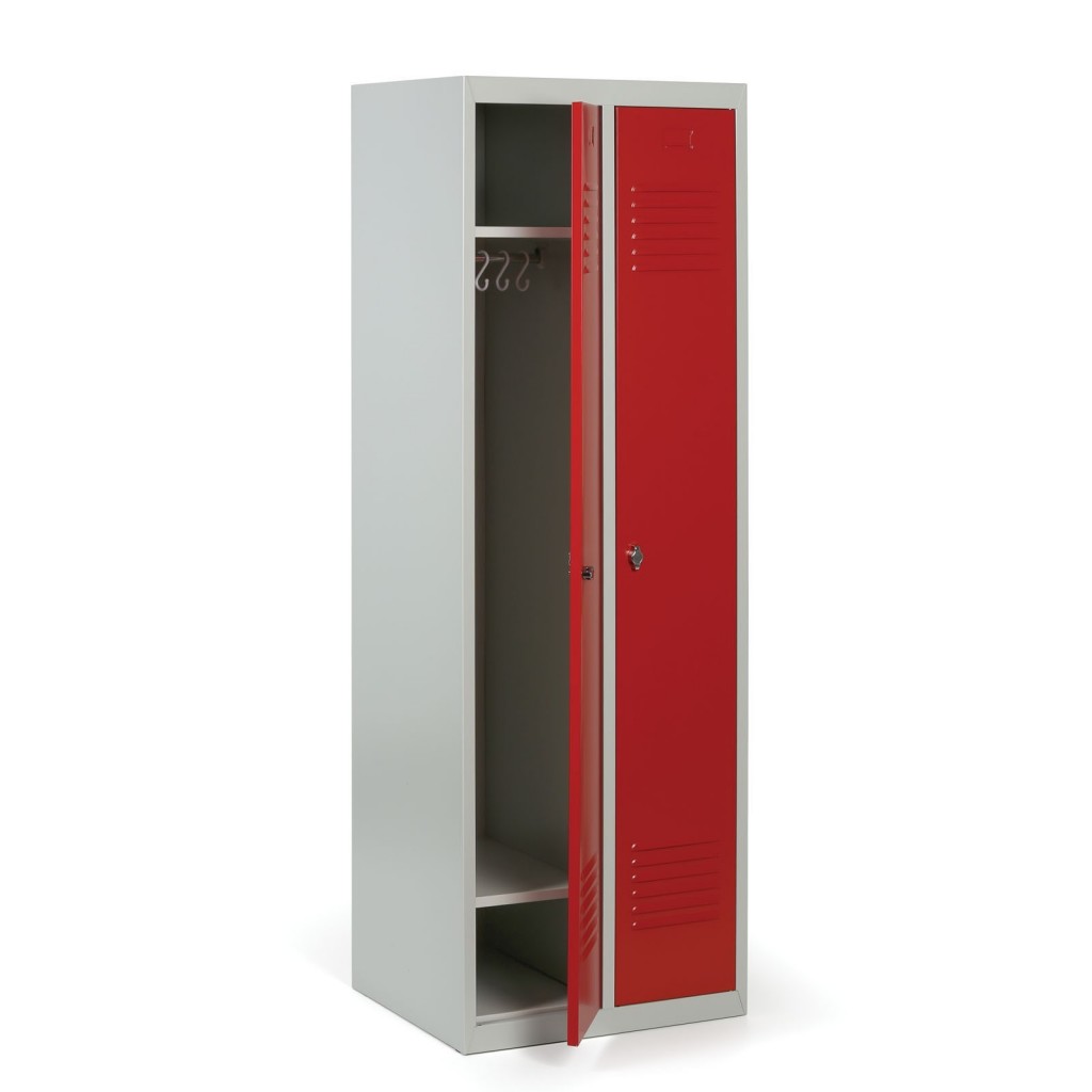 Kovová šatní skříňka S2, 2 oddíly, 1800 x 600 x 500 mm, smontováno, otočný zámek, červené dveře| Konstrukce | smontovaná |