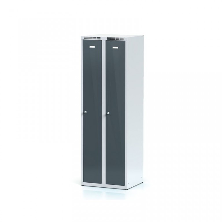 Kovová šatní skříňka s7, 2 oddíly, 1800 x 600 x 500 mm, otočný zámek, tmavě šedé dveře| Barva dveří | tmavě šedá |