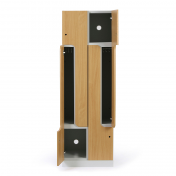 Kovová šatní skříňka S1 Z, 4 oddíly, 1850 x 600 x 500 mm, kódový zámek, laminované dveře, ořech| Hmotnost (kg) | 53 |