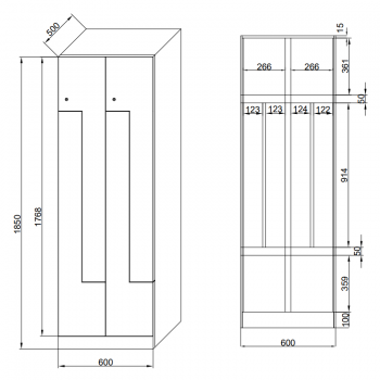 Kovová šatní skříňka S1 Z, 4 oddíly, 1850 x 600 x 500 mm, kódový zámek, tmavě šedé dveře| Hmotnost (kg) | 52 |