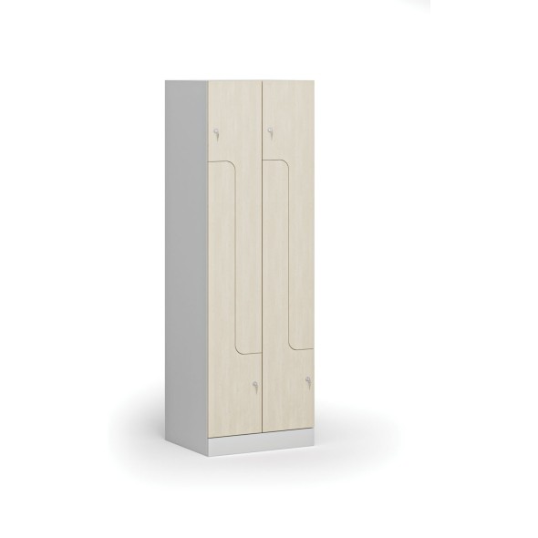 Kovová šatní skříňka Z, 4 oddíly, 1850 x 600 x 500 mm, cylindrický zámek, laminované dveře, bříza| Barva dveří | bříza |