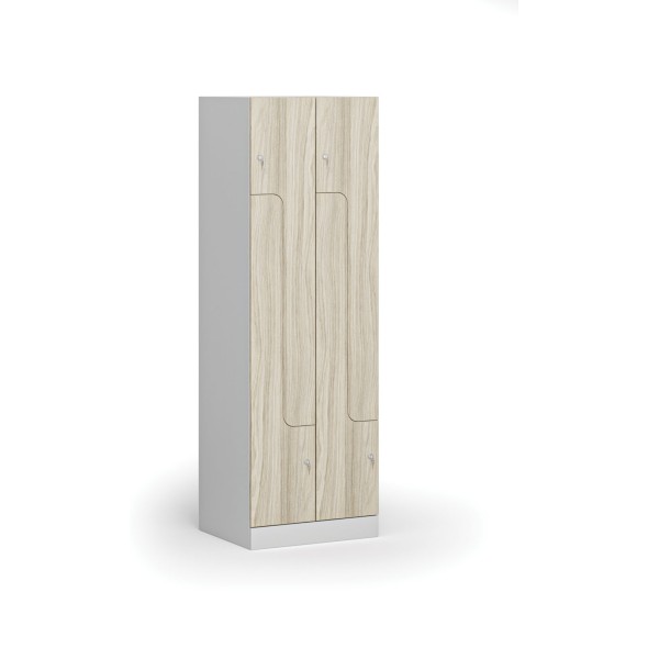 Kovová šatní skříňka Z, 4 oddíly, 1850 x 600 x 500 mm, cylindrický zámek, laminované dveře, dub přírodní| Barva dveří | dub přírodní |
