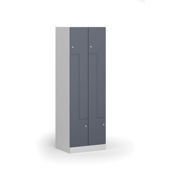 Kovová šatní skříňka Z, 4 oddíly, 1850 x 600 x 500 mm, cylindrický zámek, tmavě šedé dveře| Barva dveří | tmavě šedá |