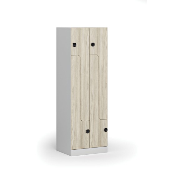 Kovová šatní skříňka Z, 4 oddíly, 1850 x 600 x 500 mm, kódový zámek, laminované dveře, dub přírodní| Barva dveří | dub přírodní |