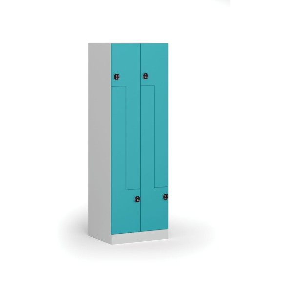 Kovová šatní skříňka Z, 4 oddíly, 1850 x 600 x 500 mm, kódový zámek, zelené dveře| Barva dveří | zelená |