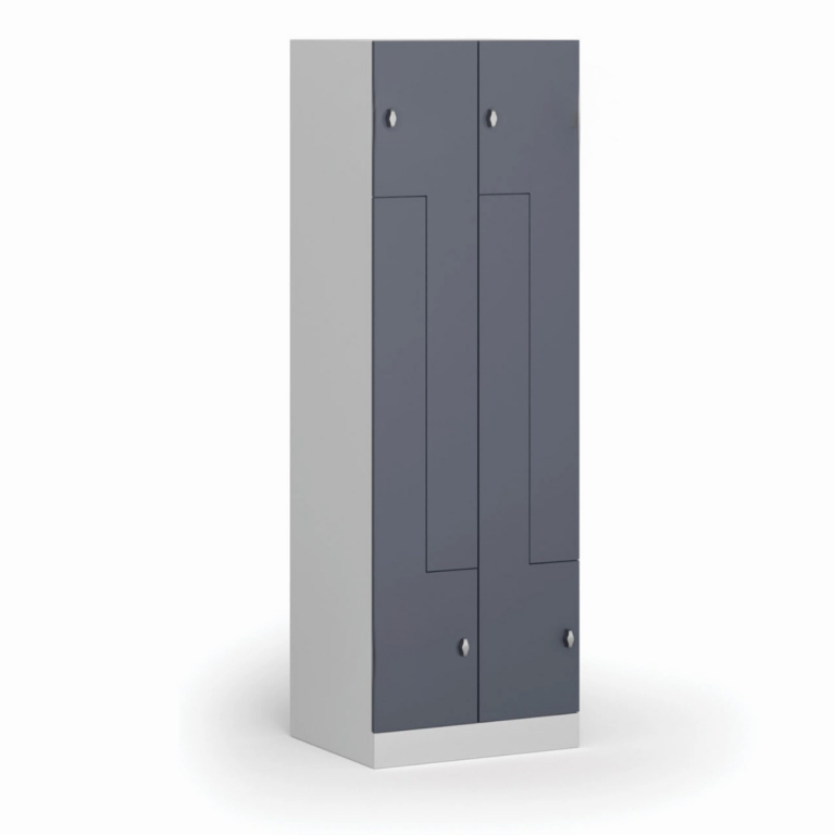 Kovová šatní skříňka Z, 4 oddíly, 1850 x 600 x 500 mm, otočný zámek, tmavě šedé dveře| Barva dveří | tmavě šedá |