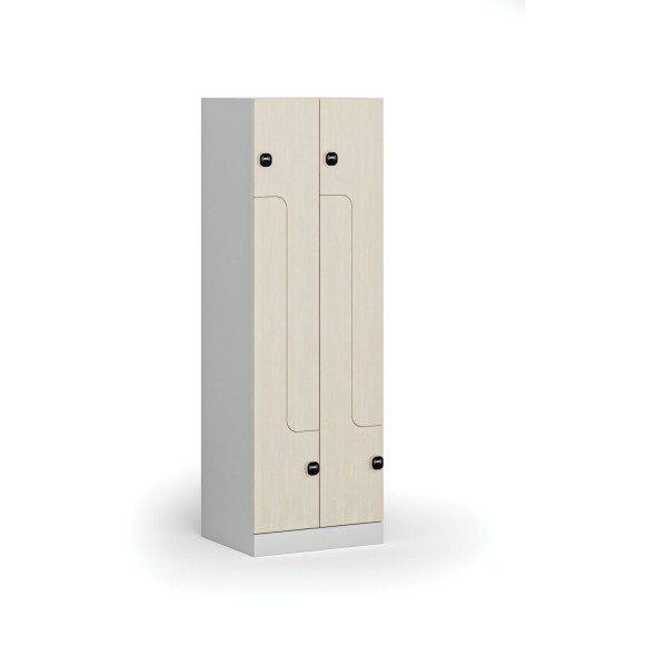 Kovová šatní skříňka Z, 4 oddíly, 1850 x 600 x 500 mm, zámek s čtečkou RFID karet, laminované dveře, bříza| Barva dveří | bříza |