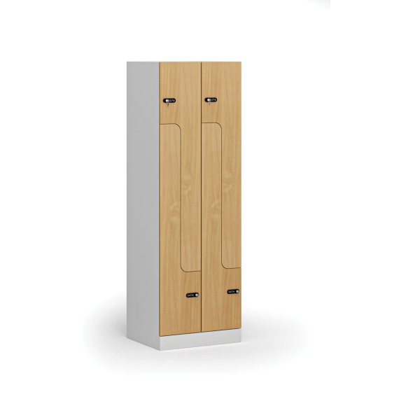 Kovová šatní skříňka Z, 4 oddíly, 1850x600x500 mm, mechanický kódový zámek, laminované dveře, buk| Barva dveří | buk |