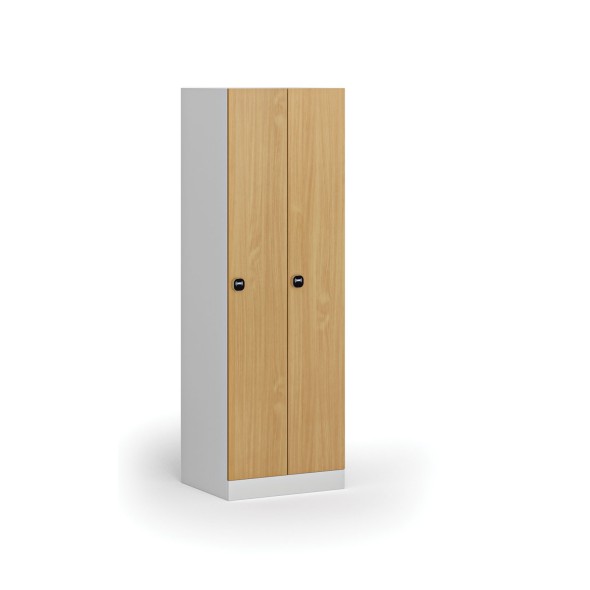 Kovová šatní skříňka, 2-dveřová, 1850 x 600 x 500 mm, zámek s čtečkou RFID karet, laminované dveře, buk| Barva dveří | buk |