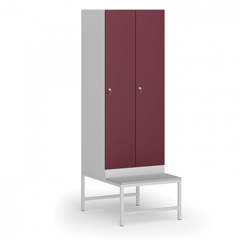 Šatní skříňka s lavičkou, 2 oddíly, 1875 x 600 x 500/800 mm, cylindrický zámek, červené dveře| Barva dveří | červená |
