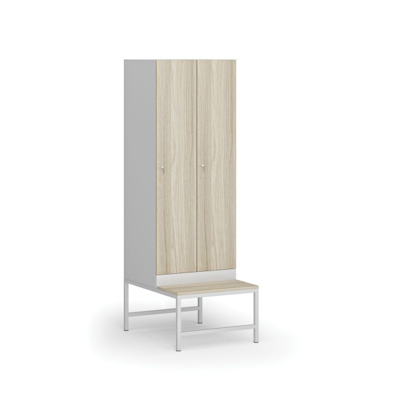 Šatní skříňka s lavičkou, 2 oddíly, 1875 x 600 x 500/800 mm, cylindrický zámek, laminované dveře, dub přírodní| Barva dveří | dub přírodní |