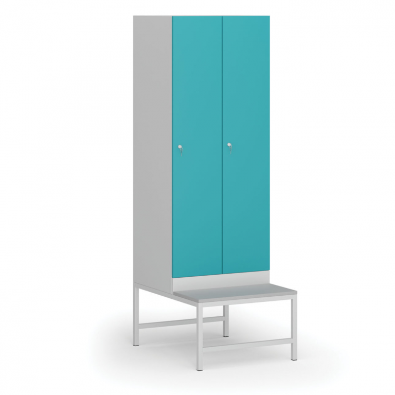 Šatní skříňka s lavičkou, 2 oddíly, 1875 x 600 x 500/800 mm, cylindrický zámek, zelené dveře| Barva dveří | zelená |