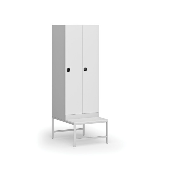 Šatní skříňka s lavičkou, 2 oddíly, 1875 x 600 x 500/800 mm, kódový zámek, laminované dveře, bílá| Barva dveří | bílá |