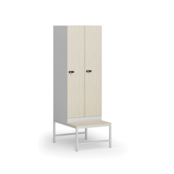 Šatní skříňka s lavičkou, 2 oddíly, 1875 x 600 x 500/800 mm, mechanický kódový zámek, laminované dveře, bříza| Barva dveří | bříza |