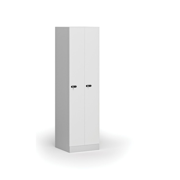 Kovová šatní skříňka zúžená, 2 oddíly, 1850 x 500 x 500 mm, mechanický kódový zámek, laminované dveře, bílá| Hmotnost (kg) | 36 |