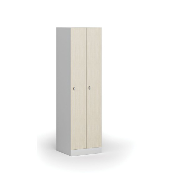 Kovová šatní skříňka zúžená, 2 oddíly, 1850 x 500 x 500 mm, otočný zámek, laminované dveře, bříza| Hmotnost (kg) | 39 |