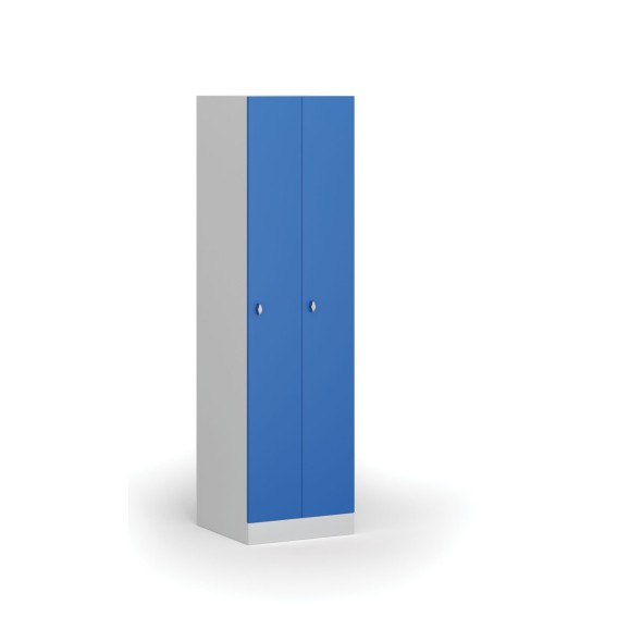 Kovová šatní skříňka zúžená, 2 oddíly, 1850 x 500 x 500 mm, otočný zámek, modré dveře| Hmotnost (kg) | 36 |