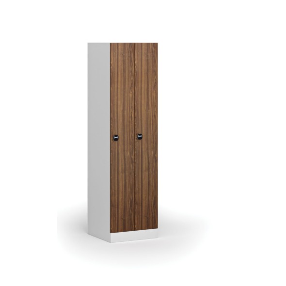 Kovová šatní skříňka zúžená, 2 oddíly, 1850 x 500 x 500 mm, zámek s čtečkou RFID karet, laminované dveře, ořech| Hmotnost (kg) | 36 |