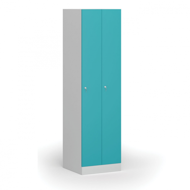 Zúžená kovová šatní skříňka, 2 oddíly, 1850 x 500 x 500 mm, cylindrický zámek, zelené dveře| Barva dveří | zelená |