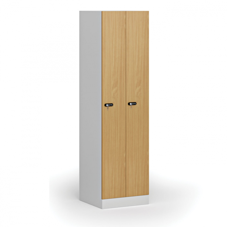 Zúžená kovová šatní skříňka S1, 2 oddíly, 1850 x 500 x 500 mm, mechanický kódový zámek, laminované dveře, buk| Barva dveří | buk |